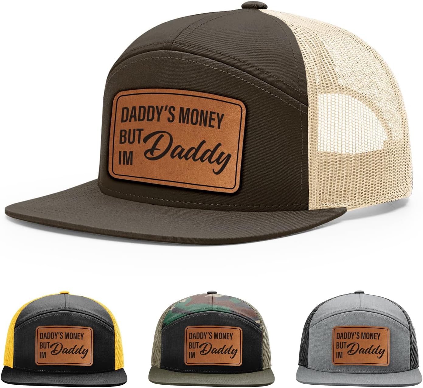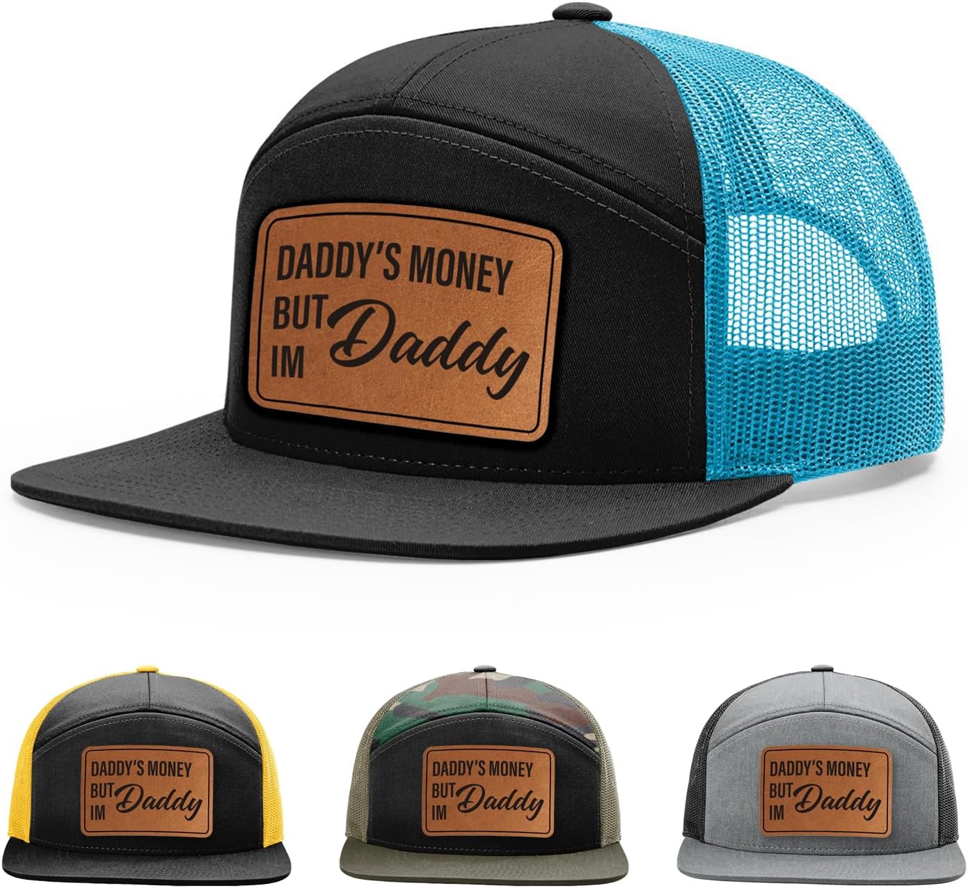 Looking for a stylish and comfortable accessory that's perfect for any casual occasion? Look no further than the Daddys Money But Im Daddy Hat! The contrasting more than 50+ hat color options add a modern flair, while the rawhide leather patch, precision laser-engraved, conveys the feelings shared by many. The 168 Style snapback style ensures a comfortable and secure fit for all head sizes, with a timeless design that combines quality and style. Embrace the message of hard work and show off your dedication with this must-have addition to any hat collection. So why wait? Add the Daddys Money But Im Daddy Hat to your accessory collection today and show off your unique personality and style!