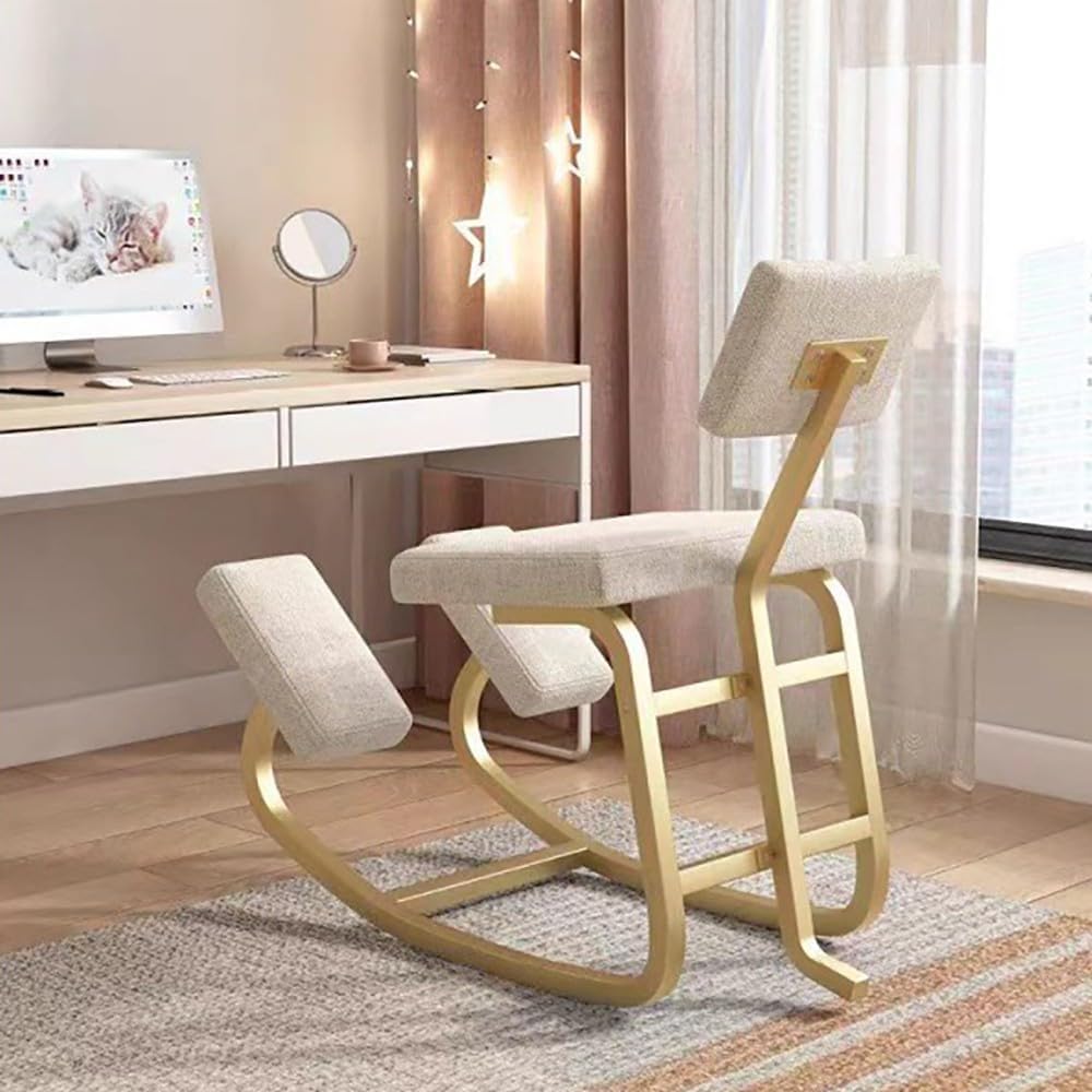 Wider knee pads and rocker features provide maximum comfort and stability while reducing back and knee stress.Perfect as an office chair, meditation chair, home office chair or typing chair.Specification:Fabric: The contact surface is technical cloth fabric, cotton and linen fabricFilling: High resilience sponge fillingFrame: Bold iron framePackage Included:1x kneeling chairsuggestion:When using it for the first time, it is recommended to use it interchangeably with a traditional office chair to let your muscles gradually adapt!If there are any quality issues with our products, please feel free to contact us via email.