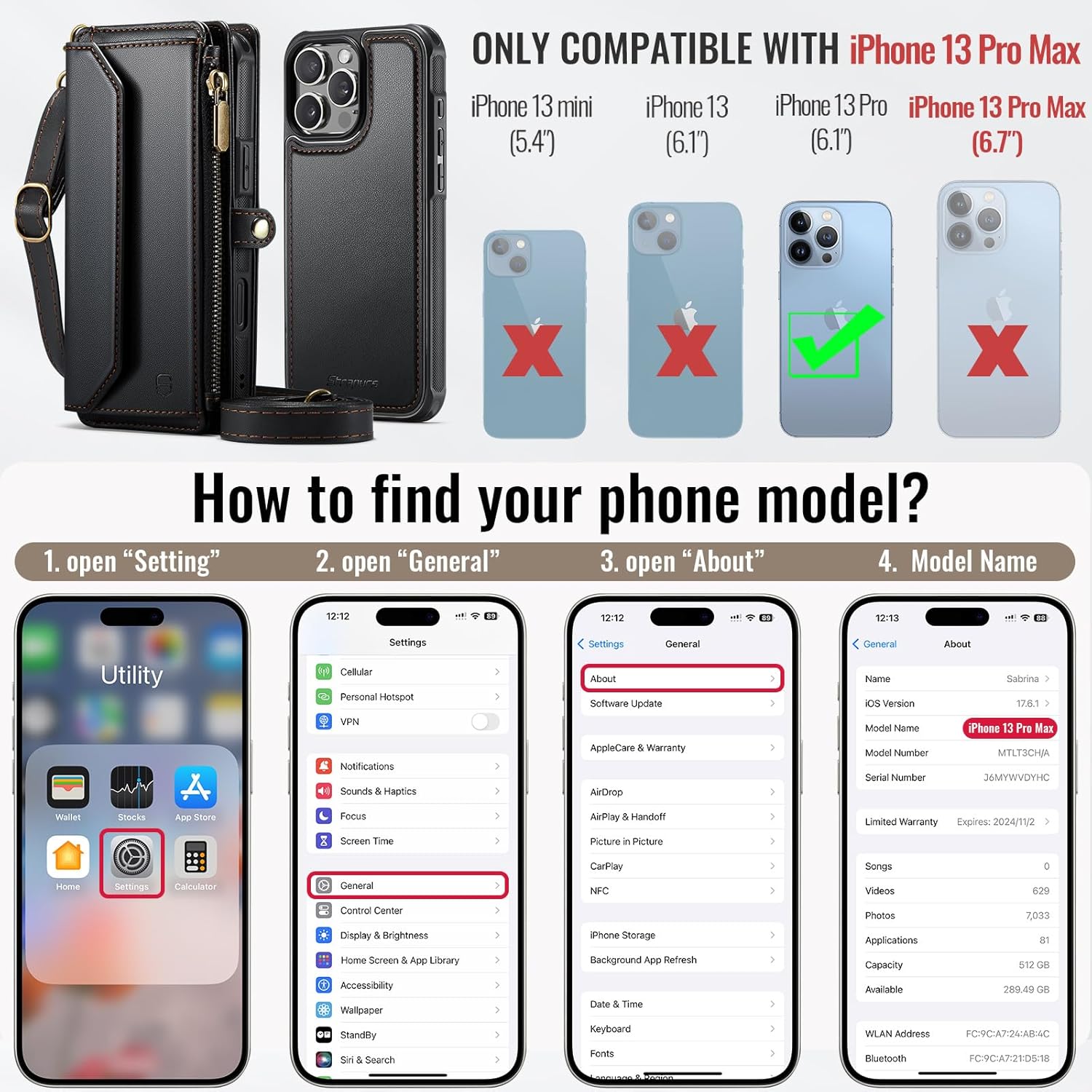 | Additional Features | 1 Magnetic Flap Pouch, 1 Zipper Pocket, 1 Cash Pocket, 2 in 1 Magnetic Detachable, 9 Card Slots With RFID Blocking, Compatible with MagSafe, Crossbody Lanyard & Wrist Strap |