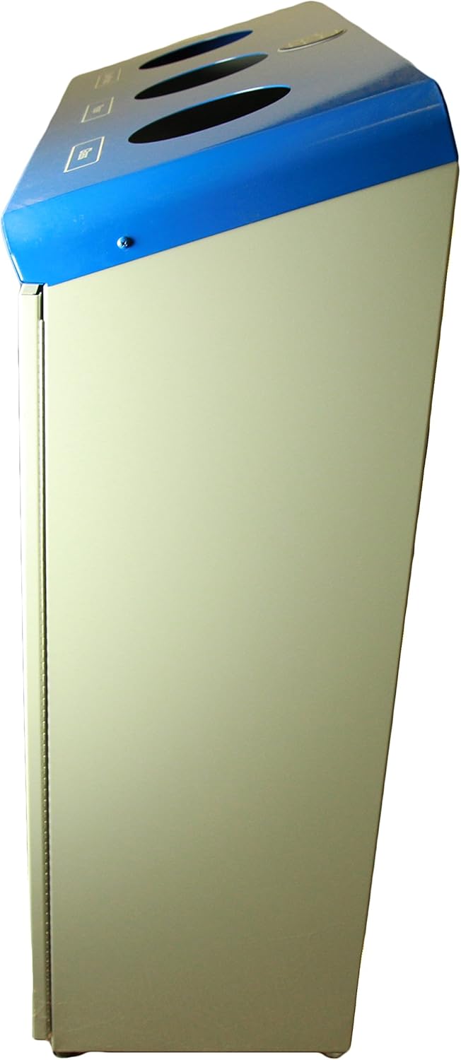 Code 316 recycling container allows for flexible mounting locations in areas requiring three streams. Anchors are included to secure the code 316 in both indoor and outdoor installations. Adjustable feet on code 316 allow for easy leveling. Flexible labeling kit accommodates specific separation requirements. English, French, and Spanish labels are included to support your waste management program. Ergonomic front loading door reduces risk of back injury. Inclined top discourages use as a table or chair. All exterior components are fabricated steel for maximum fire protection. Leak proof roto mauled polyethylene liners included. Full length piano hinge on doors with keyed tumbler Lock. Capacity of 17 us gallons per liner (67 liters), total capacity is 51 us gallons (201 liters).