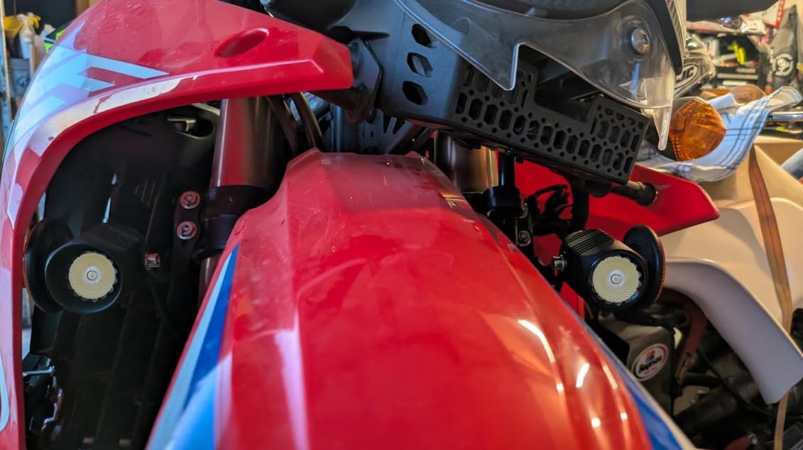 Fitment: CRF300L Rally / CRF250L Rally (2021-current) ALL MODELS Package includes: 2x led auxiliary lights Left & Right side LED light brackets 1x wire harness kit 1x LED light switch and instruction