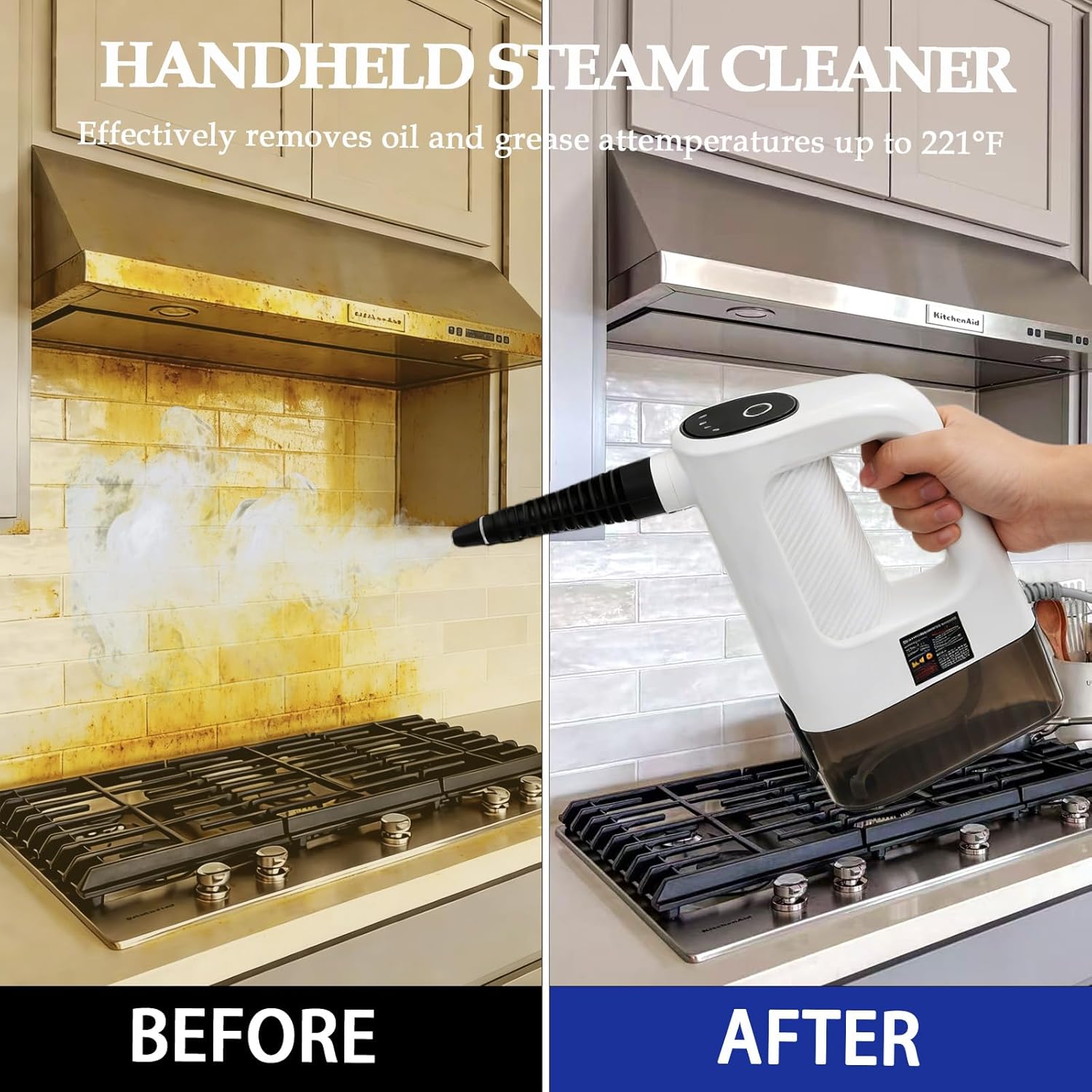 | Included Components | 15 pieces in total: 1x Steam cleaner, 1x Large brush head, 2x Small brush head, 1x Steel ball fixed brush, 1x One large scraper, 1x One small scraper, 2x Steel wool ball, 1x Extension nozzle, 1x Glass scraper, 2x Cleaning cotton cloth, 1x Water filling funnel, 1x Steam extension hose, 1x Steam cleaner |