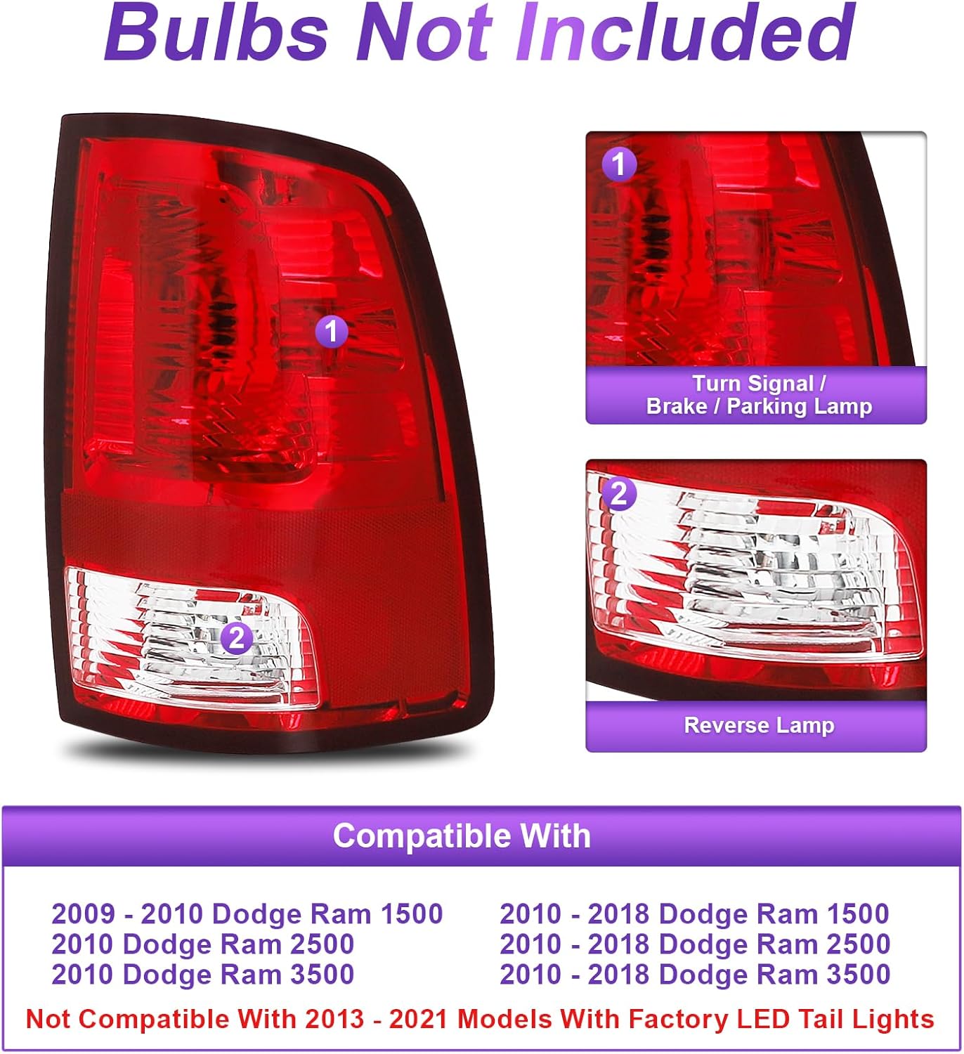 Bincmay Tail Lights Assembly Fit For 2009-2018 2009 2010 2011 2012 2013 2014 2015 2016 2017 2018 09 10 11 12 13 14 15 16 17 18 Dodge Ram 1500 2500 3500 Taillight Right Side