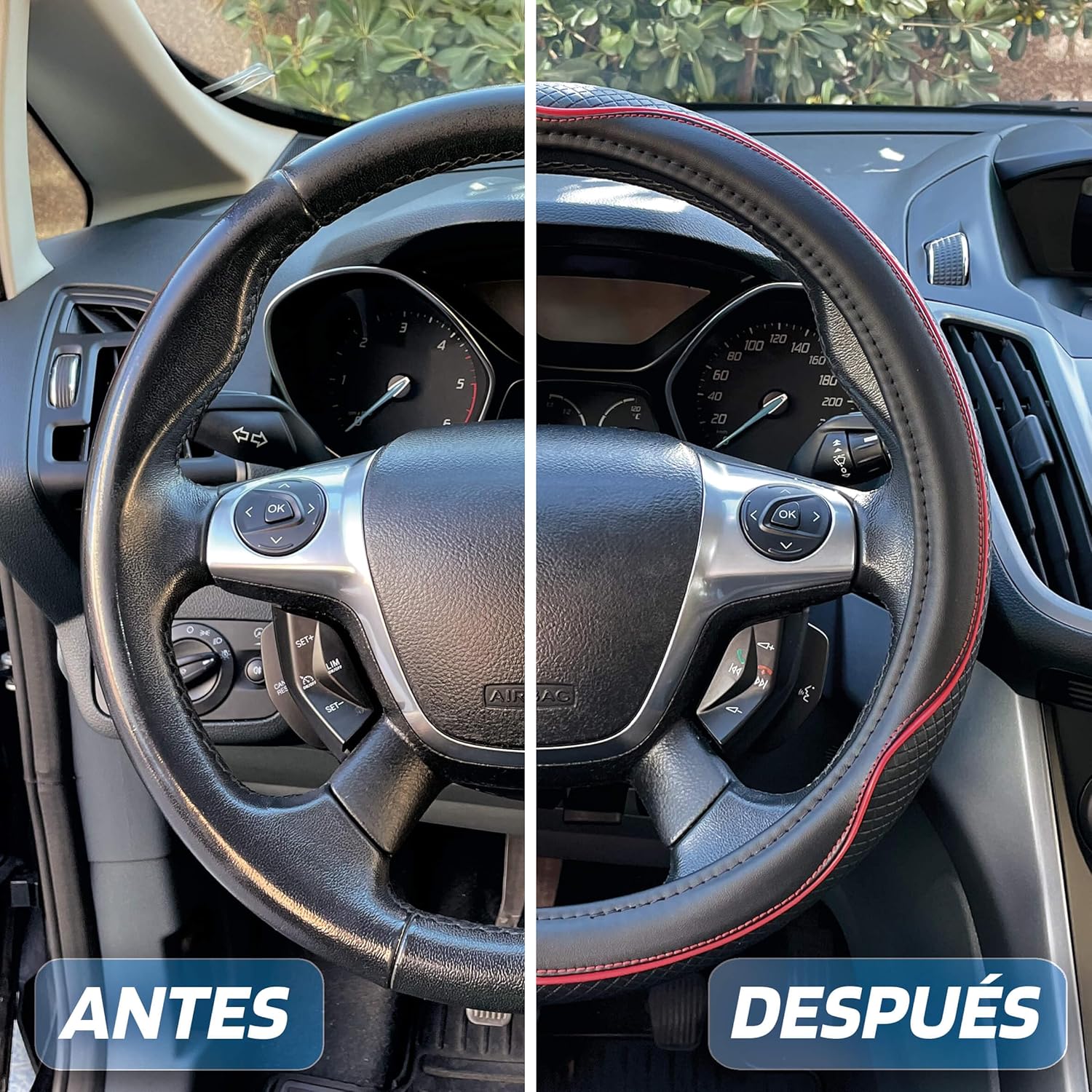 UNIVERSAL SIZE - Fits middle-size steering wheels that measure 14.5-15.5 inches in outer diameter. It can fit most cars. ELEGANT AND STYLISH: The cover is elegant and well crafted, which enhances the appearance of your car's interior. INCREASE SAFETY - The non-slip material provides excellent grip on the steering wheel, increasing safety during driving. Excellent Protection - Cold and heat resistance protects steering wheel and hands from extremely cold and hot temperatures. Durable: Made of high quality polo leather, non-toxic and odorless.